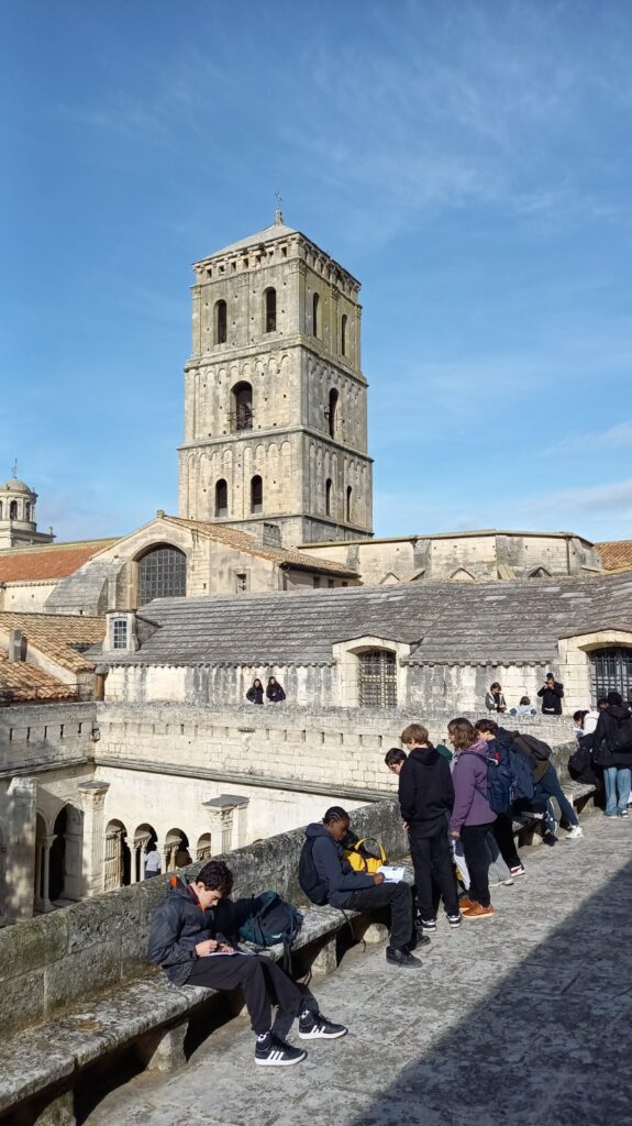Ce matin nous sommes à l´assaut d´Arles. Les Alyscamps (une ancienne nécropole) ont connu un véritable succès auprès des élèves ! Le cloître St-Trophime les ravit aussi.